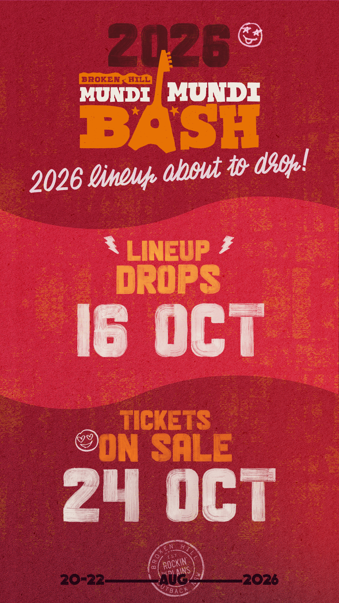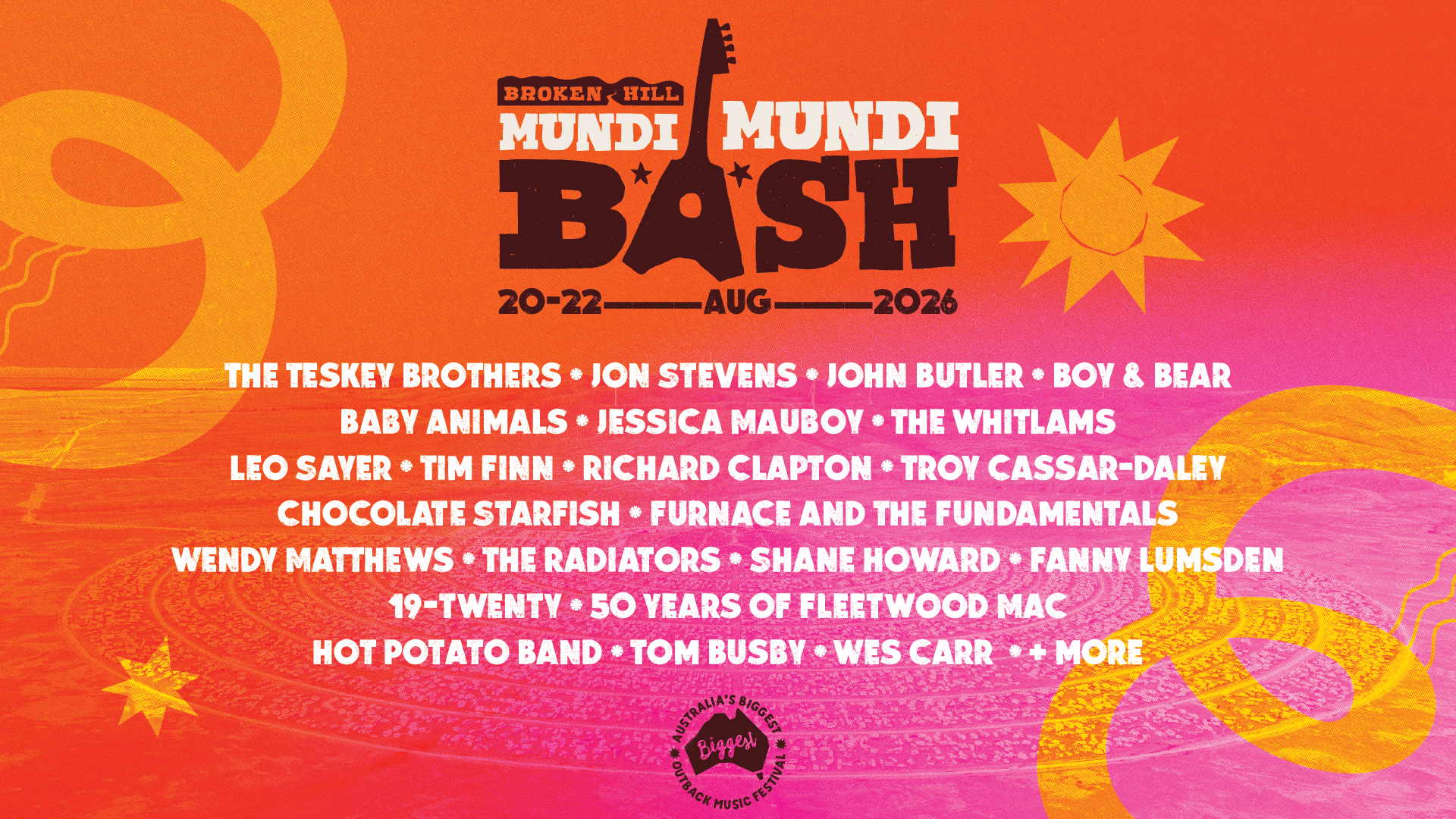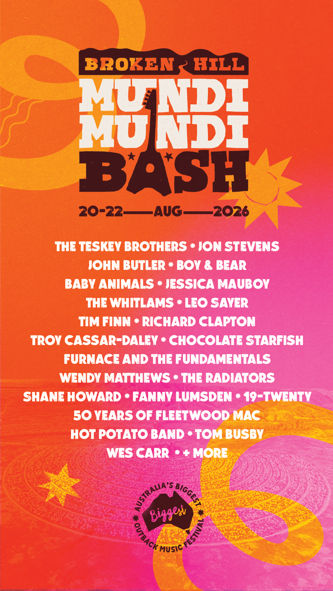 Three days of iconic Aussie artists performing live against the breathtaking backdrop of the Mundi Mundi Plains. Unbeatable sunsets, starlit nights, and classic anthems you’ll sing for days.